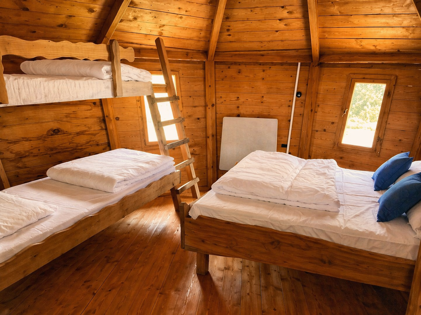 La cabane est équipée d’une pièce principale (la chambre) et d’une petite pièce où nous avons mis une fontaine à eau pour une toilette de chat. Concept respectueux de l’environnement, les cabanes disposent de toilettes sèches. Pour plus de confort, des sanitaires classiques sont disponibles 24h/24 à la Capitainerie, le bâtiment d’accueil. Les cabanes sont équipées d’un panneau solaire qui alimente des lumières à LED permettant un éclairage d’appoint à l’intérieur de chaque cabane. Il est ainsi possible de lire, et de pouvoir recharger ses petits appareils électriques (téléphone, tablette, smartphone…) grâce à ces prises USB. Nous avons également disposé un chauffage d’appoint pour les nuits les plus fraîches, en hiver. Pour les plus frileux, n’oubliez pas d’apporter des vêtements chauds !