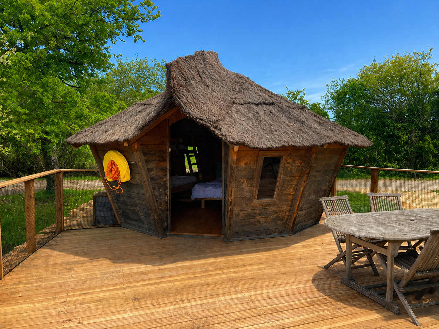 La cabane Amarante est une belle cabane familiale tout au bord de l’eau, avec une jolie et grande terrasse avec une vue imprenable sur l’étang. Vous pouvez pêcher depuis la terrasse !
